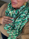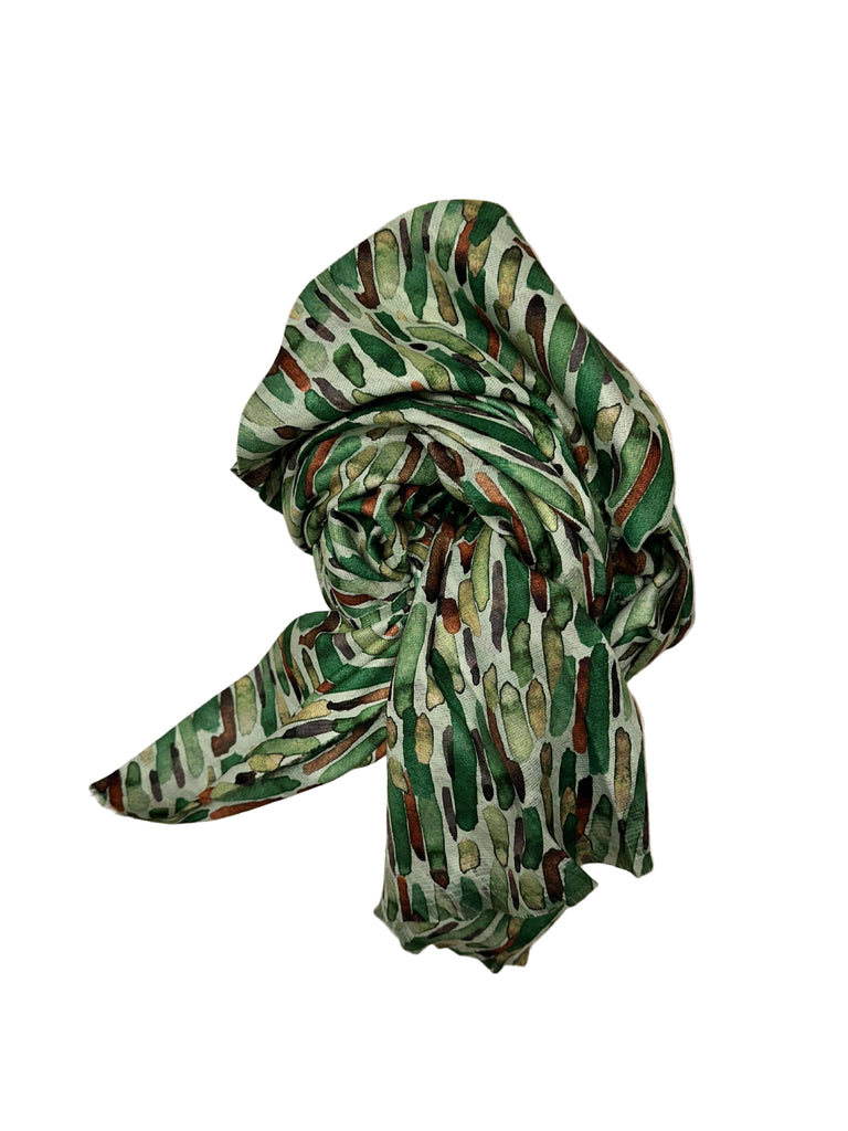 BESKRIVELSE: Lækkert aflangt tørklæde. Flere nuancer i mønsteret. Måler 180 x 75 cm.