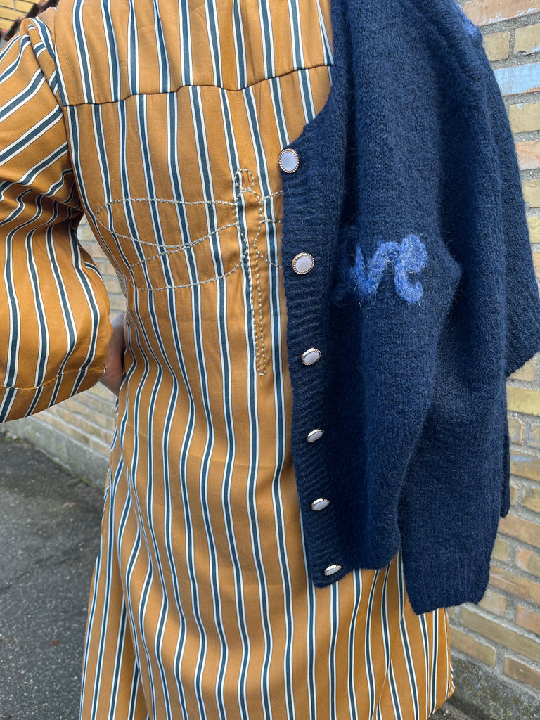 Ærmerne har 3/4 længde, med vidde hele vejen.