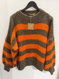 BESKRIVELSE: Lækker strikbluse med rund hals og lange ærmer. Den er stribet og har rib i alle kanter.