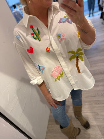 QNUZ 9274 Boheme shirt embrodery ecru
