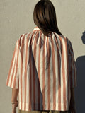 En stribet bluse i et moderne snit, der kombinerer komfort, design og skandinavisk æstetik.