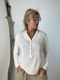 BESKRIVELSE: Palermo bluse er en tidløs og feminin bluse, hvor komfort, kvalitet og fine detaljer går hånd i hånd. Blusen kombinerer to materialer, hvilket giver både et eksklusivt udtryk og høj bærekomfort. Selve blusen er fremstillet i en let og blød gauze-kvalitet, som har et naturligt, let krøllet look og føles behagelig mod huden.