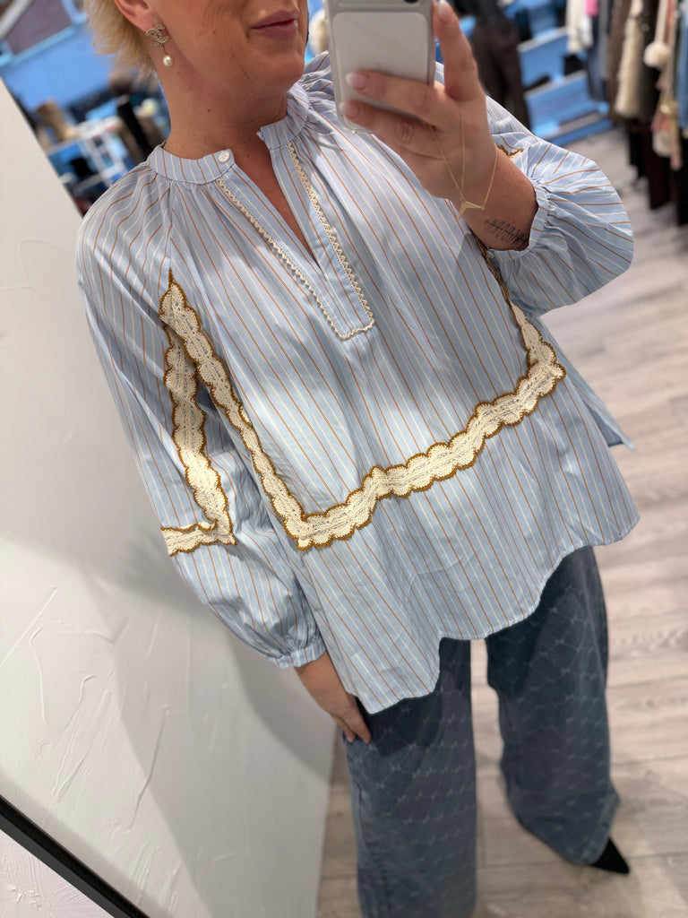 BESKRIVELSE: Super flot skjorte med rund hals og lange ærmer. Den har striber med .