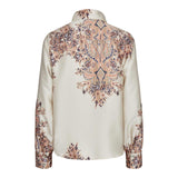 BESKRIVELSE: Smuk bluse / skjorte med lange ærmer og krave. I smukkeste paisley-mønster. Den lukkes foran med knapper.