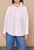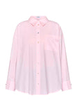 BESKRIVELSE: love1518 er en oversized poplin-skjorte i et afslappet boyfriend fit. Skjorten har en klassisk krave, drop shoulders og en elegant brystlomme med diskret logobroderi. Modellen har en str. S på.