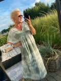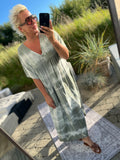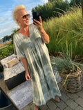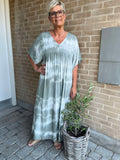BESKRIVELSE: Super flot kjole med flagermusærmer og V hals. Let og dejlig kjole til at have på, når det er varmt og flot medcardigan eller jakke ud over også.