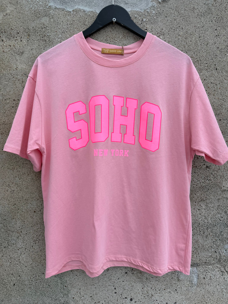 BESKRIVELSE: Lækker T-shirt med V hals og korte ærmer. Den har trykt SOHO på fronten.