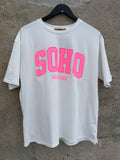 BESKRIVELSE: Lækker T-shirt med V hals og korte ærmer. Den har trykt SOHO på fronten.