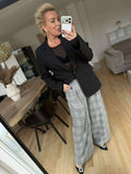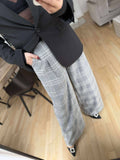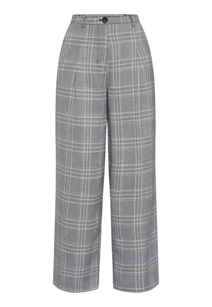 BESKRIVELSE: love1288 er en klassisk habitbuks i tern med lige ben og to sidelommer. Modellen har en størrelse S på. Helle (lyst hår) har størrelse L på.