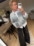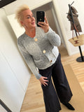 BESKRIVELSE: Lækker cardigan med lange ærmer og guldfarvede knapper foran.