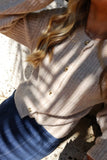 BESKRIVELSE: Smuk cardigan med guldfarvede knapper. Den har rund hals og lange ærmer.