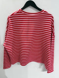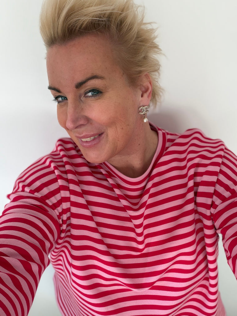 BESKRIVELSE: Lækker bluse med rund hals og lange ærmer. Den er stribet pink og rød.