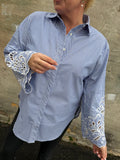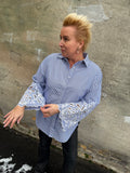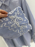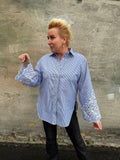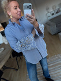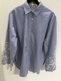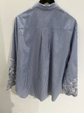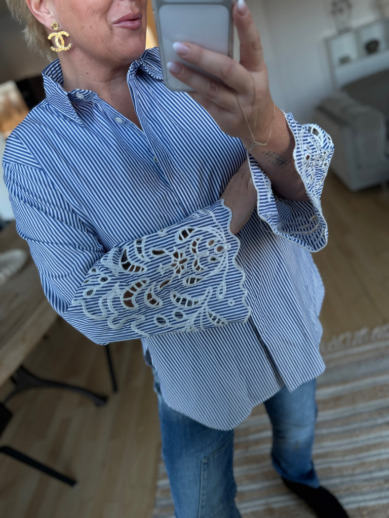 BESKRIVELSE: Smart stribet skjorte med almindelig krave og lange ærmer med broderi.