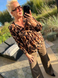 BESKRIVELSE: Super flot bluse med lange løse ærmer med smock-elastik for enden og rund halsudskæring med bindebånd.