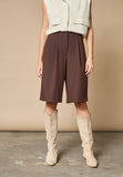 BESKRIVELSE: love1297 er et par bermuda shorts med en løs pasform og bredde i benene, som ender omkring knæene. Shortsne har en høj talje med bæltestropper. Modellen har en str. S på og er 179 cm høj.