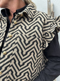 BESKRIVELSE: Lækker oversize vest med smukke guld knapper på stolpe, som er gennemknappet.
