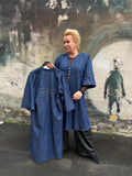 Ærmerne har 3/4 længde, med vidde hele vejen.