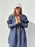 BESKRIVELSE: Lækker lang denim skjorte, så man også kan bruge den som en jakke.