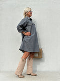 Desuden lommer i siden, med stolpelukning foran, med smukke guldknapper.