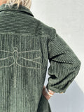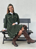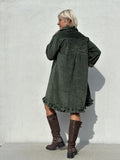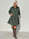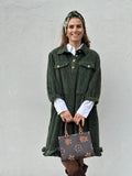 Desuden lommer i siden, med stolpelukning foran, med smukke guldknapper.