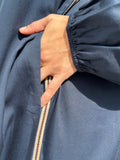 Lange ærmer med elastik i enden, som gør den let kan skubbes op.