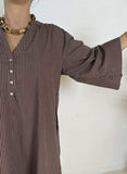 Ærmerne har 3/4 længde, med vidde hele vejen.