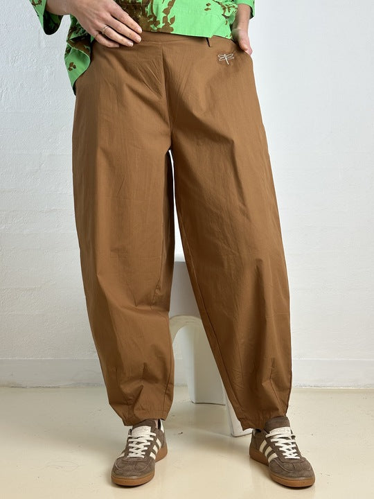 BESKRIVELSE: Den moderigtige barrel-buks i blød poplin har et afslappet, men stilfuldt snit med masser af vidde i lårene og en smallere afslutning ved anklerne. Modellen stumper let og giver et cool, moderne udtryk.