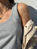 BESKRIVELSE: Osaka Tanktop er en enkel og feminin basis-top med et rent, tidløst udtryk. Den tætsiddende pasform og den klassiske rundede halsudskæring gør den til et alsidigt item, der fungerer perfekt alene på varme dage eller som lag-på-lag under skjorter, strik og blazere.