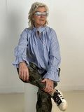 BESKRIVELSE: Himalaya Stripe Shirt er en elegant og feminin skjorte med et let og tidløst udtryk. Skjorten er designet i blå og hvid med fine, lodrette striber, der giver et klassisk og friskt look.