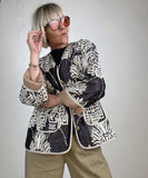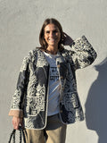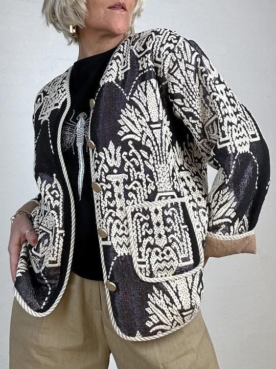 BESKRIVELSE: Marseille Jacket er en karakterfuld jakke med et markant, vævet mønster og et afslappet, tidløst snit. Jakken har en lige, let boxy silhuet, som giver et moderne udtryk og gør den velegnet som både overgangsjakke og indendørs lag. De lange ærmer er afsluttet med kontrastfarvede manchetter, som kan foldes op og tilfører en fin, afslappet detalje.