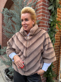 BESKRIVELSE: Smuk pels i vegan, det vil sige ikke ægte pels. Det er en super flot efterligning af ægte pels. Den har 3/4 lange ærmer og skorstens-krave.