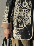 BESKRIVELSE: Marseille Jacket er en karakterfuld jakke med et markant, vævet mønster og et afslappet, tidløst snit. Jakken har en lige, let boxy silhuet, som giver et moderne udtryk og gør den velegnet som både overgangsjakke og indendørs lag. De lange ærmer er afsluttet med kontrastfarvede manchetter, som kan foldes op og tilfører en fin, afslappet detalje.
