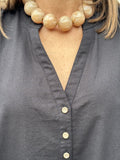 Lange ærmer med elastik i enden, som gør den let kan skubbes op.