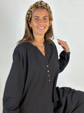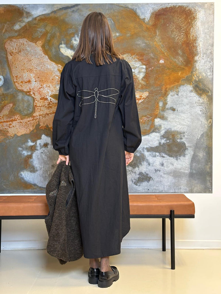 BESKRIVELSE: Lækker langærmet kjole i bomulds kvalitet.