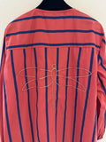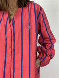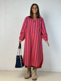 BESKRIVELSE: En feminin og moderne kaftan i pink med blå striber – perfekt til både hverdag og varme sommerdage. Kaftanen har stolpelukning foran med matte guldknapper, som giver et eksklusivt touch, og de lange ærmer har elastik ved håndleddet, så de nemt kan skubbes op for et mere afslappet look.