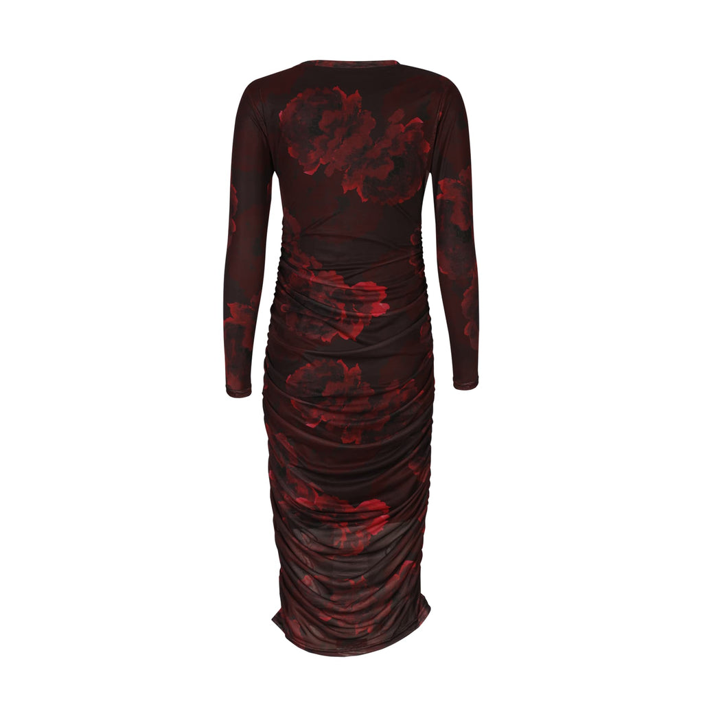 BESKRIVELSE: Smuk og let mesh kjole med lange ærmer og rund hals. Den har dobbeltlag , så den ikke er gennemsigtig.
