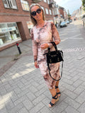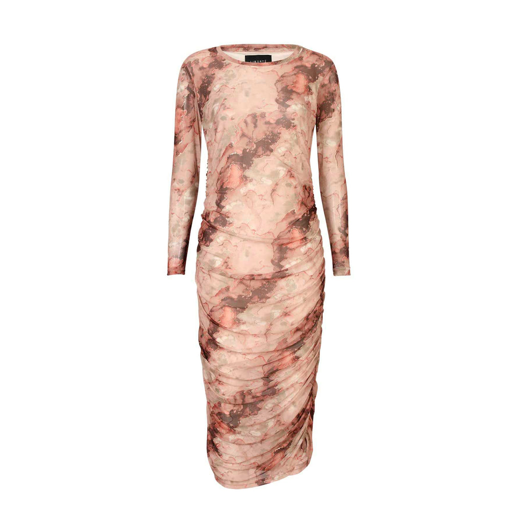 • Liberte 22119 mesh long LS dress brown gold