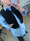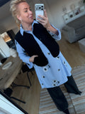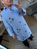 BESKRIVELSE: love1476 er en stribet skjortekjole med et unikt blomster broderi. Kjolen har lange voluminøse ærmer, klassisk krave og knaplukning. Modellen med langt hår har størrelse S på. Helle kort hår har M på.