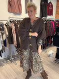 S/M: Omkreds bryst 110 cm / længde 123 cm + 2 cm bag
