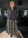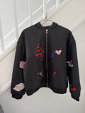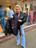 BESKRIVELSE: Helt unik bomber jakke i sort med de smukkeste broderinger på over hele jakken. Både på ærmer, foran og bagpå er der smukke broderinger. Den har lynlås og elastik ærmer og forneden. Jakken er til alle os der elsker champagne.