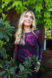 Liberte 22065 mesh LS T-shirt bordeaux flower