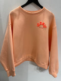 BESKRIVELSE: Smart sweatshirt / bluse med lange ærmer og rund hals. Den har syet frotte med teksen ICONIC CLUB på ryggen og minde applikation på venstre bryst.