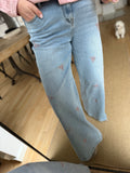 BESKRIVELSE: Smart denim jeans i flot blå vask med broderede sommerfugle på fronten. Dejligt med stræk og virkelig bløde og behagelige at have på.