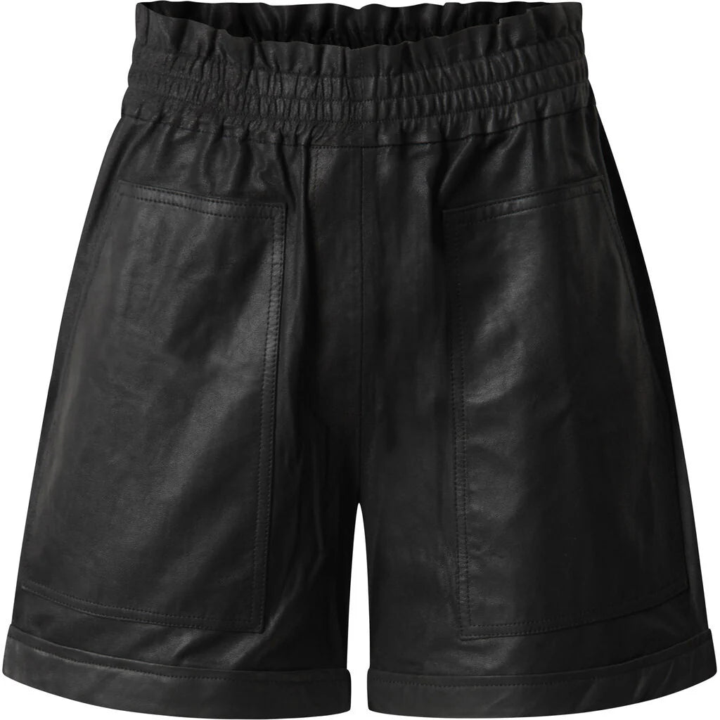 Hanna nappalon skind shorts kan styles med en skjorte eller T-shirt for et rent og moderne look, eller kombineres med en blazer for et mere sofistikeret udtryk. Et alsidigt og tidløst leather-piece.
