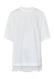 BESKRIVELSE: love1462 er en t-shirt i et sweat materiale. T-shirten er detaljeret med en påsyet blondekant. Modellen har en str. S på.