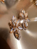 BESKRIVELSE: Smukke guldfarvede øreringe med flotte similisten i klare og varm sandfarvede. De måler 5 cm i længden og 3 cm i bredden. Fuldender et hvert outfit.
