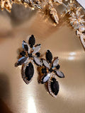 BESKRIVELSE: Smukke guldfarvede øreringe med flotte similisten i grå, klare og sorte. De måler 5 cm i længden og 3 cm i bredden. Fuldender et hvert outfit.