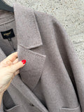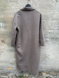 BESKRIVELSE: Smuk let jakke i uldblanding. Den har smukke stikninger på riveret og lange ærmer. Jakken har lommer på siderne.