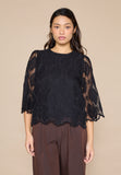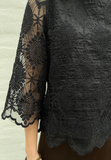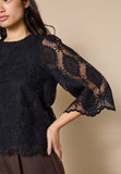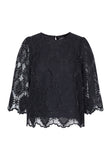 BESKRIVELSE: love1498 er en feminin blonde bluse. Blusen har trekvartlange ærmer der er afsluttet af en fin blondekant. Modellen har en str. S på.