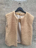 BESKRIVELSE: Sød kort teddy vest til de køligere dage, vesten har foe´r og lommer.